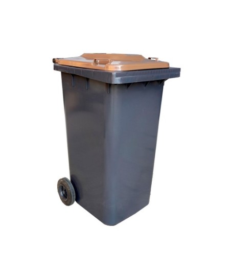 Contentores fabricados em PE-HD por injeção compacta.¶¶Esvaziamento por inclinação sobre um rebordo dentado ¶Resistente aos raios UV, ao frio, ao calor e aos produtos químicos¶Rodas de funcionamento suave com pneus de borracha maciça ¶Eixo da roda em aço maciço, galvanizado. ¶Rodas standard com rebordos de borracha maciça 200x50mm com capacidade de 100kg/roda.¶¶Os contentores cumprem as normas de proteção contra o ruído de acordo com a diretiva da UE e ostentam a marca de potência acústica garantida (CE). ¶¶Largura total entre rodas: 480mm¶Profundidade frontal: 543mm¶Altura do corpo: 875mm¶Altura total: 927mm¶Roda Ø: 200 mm¶Peso: 10,4 Kg¶¶Cor do corpo: Cinzento¶Cor da tampa: Castanho