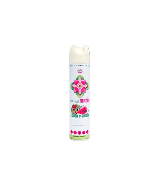 PARA CASA E JARDIM¶Inseticida adequado para uso em locais com plantas, sem danificá-las e assim espantar as moscas. ¶Combate insetos com uma única aplicação sem pesticidas. ¶¶Pulverizador de alta precisão ¶Agradável aroma floral¶¶Não utilizar na presença de pessoas e/ ou animais domésticos.¶Não pulverizar sobre os alimentos nem utensílios de cozinha. ¶Não se deve aplicar sobre superfícies onde se manipulem, preparem, sirvam ou consumam alimentos. ¶Ventilar adequadamente antes de entrar no recinto. ¶¶Recipiente de aerossol 300ml¶Extremadamente inflamável¶Densidade: 0,74-0,78 g/ml