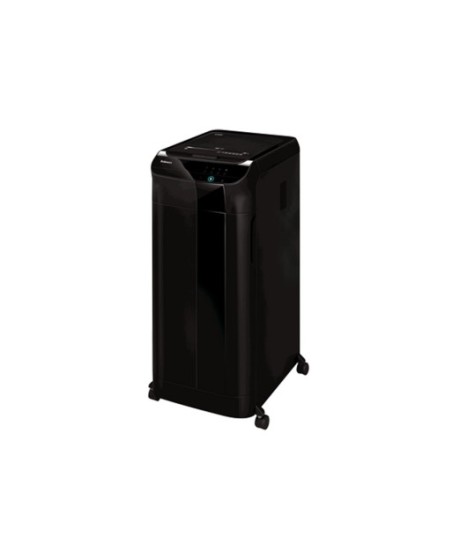 Ideal para ambientes de escritório de 5+ usuários que regularmente acumulam grandes volumes de resíduos de papel¶Capacidades de trituração automática de 550 folhas e manual de 14 folhas (70 g / m²)¶Destrói documentos em partículas de corte transversal de 4x38 mm (DIN Nível P-4)¶Destrói a capacidade de 550 folhas em aproximadamente 13 minutos¶O sistema Smart Lock permite que o usuário bloqueie a trituradora com um PIN de 4 dígitos para evitar o acesso a documentos enquanto a trituração está em andamento¶Caixote do lixo removível de 83 litros¶Também destrói CDs e cartões de crédito (alimentação manual) e grampos e clipes de papel¶Garantia de máquina de 2 anos e garantia de cortador de 20 anos¶¶Tipo de corte Cross-Cut¶Tamanho de corte 4 x 38 mm¶Nível DIN - papel P-4¶Tempo máximo de execução (minutos) Contínuo¶Número de usuários 5+¶Tecnologia Anti-Jam Auto reversão¶Economia de energia Modo dormir¶Pode destruir Staples / Cartões de crédito / Clipes de papel / CDs / DVDs¶Tipo de cesta Gabinete com cesto de lixo¶Cor Preto¶Tipo de material Aço¶Tipo de alimentação Auto Feed
