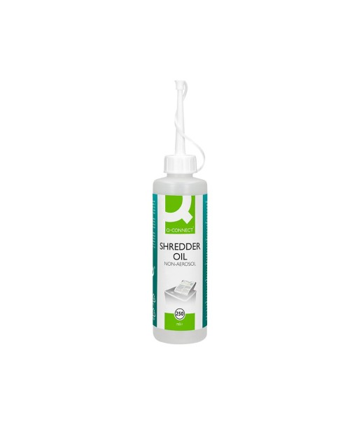 Para as destruidoras que são submetidas a uma utilização intensiva, a manutenção regular é essencial para as manter a funcionar de forma ótima e com o padrão de destruição necessário para proteger as suas informações. ¶¶O óleo para destruidor Q-Connect prolonga a vida útil do seu destruidor, reduz os custos de manutenção e diminui o ruído do destruidor.¶¶Fácil de utilizar, basta desligar a destruidora antes da aplicação, aplicar o óleo lubrificante nos rolos das lâminas do dispositivo de corte e fazer funcionar o sistema para a frente e para trás sem alimentar papel.¶¶Embalagem de 250ml