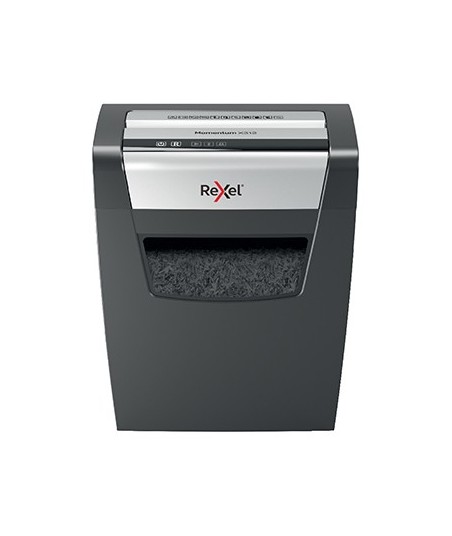 O poder de destruir mais! ¶A destruidora de papel Rexel Momentum X312 destrói até 12 folhas de uma só vez, funciona ininterruptamente por 6 minutos e é ideal para uso doméstico. ¶¶A tecnologia anti-interferência do modelo X312 garante uma operação ininterrupta. ¶P3, corte transversal (partículas 5 × 42 mm). ¶Destruidora silenciosa com botões táteis simples e intuitivos e contentor de capacidade de 23 litros (200 folhas A4).¶¶Tipo Destruidora: Manual¶Destrói folhas manual (80gr): 12¶Largura máx folha (mm): 220¶¶Segurança: (P-3) Confidencial¶¶Tipo de Corte: Cruzado¶Largura Corte (mm): 5 x 42¶1xA4 em n. particulas: 200¶Cesto (L): 23¶Capacidade cesto (folhas A4): 550¶Tipo de Cesto: Elevação cabeçote¶¶Ciclo de trabalho (min): 6¶Estilo: Personal/Home Office¶Utilizadores: 1-2¶Volume de trabalho: Ligeiro¶¶Destrói Agrafes: Sim¶Destrói Clips: Sim¶Destrói Cartões de Crédito: Não¶Destrói CDs: Não¶Slot CD: Não¶¶Tecnologia anti encravamento: Auto Reverse¶Touch Control: Sim ¶Manual Reverse: Sim¶Auto Reverse: Sim¶Indicador aquecimento: Sim¶Auto Start/Stop: Sim¶Janela cesto: Sim¶¶Arrefecimento: Não¶Período máximo de arrefecimento: 60¶Velocidade (mt/min): 1,8¶Ruído dBA: 62¶ECO Mode: Sim¶Consumo "standby": 1,5 Watt¶Consumo (W): 280¶¶Peso (Kg): 6,5¶Dimensões (A x L x P): 423 x 356 x 238 mm¶¶Informação de lubrificação ¶Como qualquer equipamento com motor, a maneira mais fácil de prolongar a vida útil da destruidora é triturar uma folha de lubrificação, com regularidade. (Ler atentamente o manual instruções que acompanha o equipamento.)¶#2101948-Pack 12 folhas