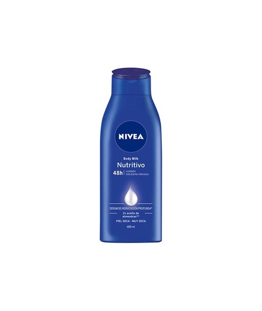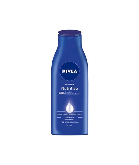 NIVEA Body Milk Nutritivo foi enriquecido com NIVEA DEEP MOISTURE SERUM e 2x mais Óleo de Amêndoa, comparando com a fórmula anterior. Uma combinação única de hidratantes que existem naturalmente na pele, o que impede que a hidratação evapore facilmente. Nutre intensivamente a pele por 48h, reduzindo visivelmente a aspereza da pele muito seca - após uma única aplicação. O cuidado intensivo original: Body Milk Nutritivo, 400 ml.¶¶48h hidratação profunda¶Fórmula enriquecida com NIVEA DEEP MOISTURE SERUM e 2x mais Óleo de Amêndoa¶Transforma a pele muito seca em pele visivelmente mais suave