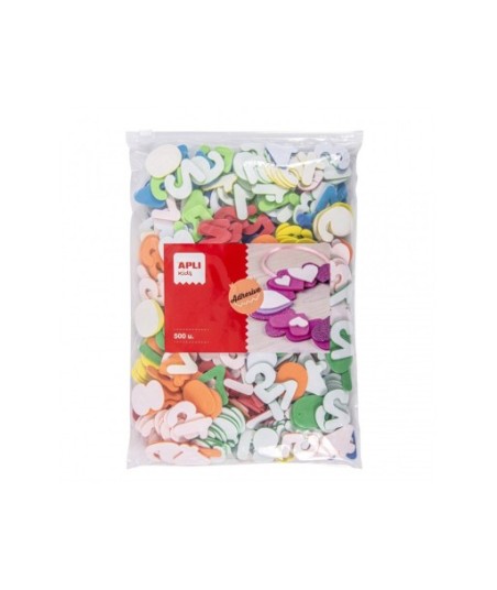 Números adesivos de borracha EVA em cores variadas: amarelo, laranja, vermelho, azul claro, azul, verde claro e verde. Cada forma tem aproximadamente 35 x 2 mm de espessura. Cada embalagem contém 500 formas. Formato MAXI, ideal para escolas.¶Ideal para uso em casa e na escola em artesanato, álbuns, cartões comemorativos, etc. Excelente ferramenta para os pequenos começarem a se familiarizar com os números com um material macio e seguro.