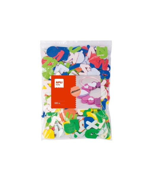 Letras de borracha adesiva EVA em cores variadas: amarelo, laranja, vermelho, azul claro, azul, verde claro e verde. Cada forma tem aproximadamente 35 x 2 mm de espessura. Cada embalagem contém 500 formas. Formato MAXI, ideal para escolas.¶Ideal para uso em casa e na escola em artesanato, álbuns, cartões comemorativos, etc. Excelente ferramenta para os pequenos começarem a se familiarizar com as letras com um material macio e seguro.