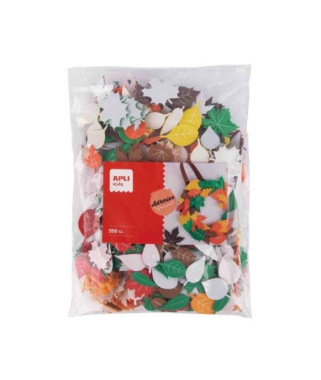 Folhas de espuma adesiva EVA com diferentes formas, cores e tamanhos variados. ¶O tamanho das folhas é de 3 a 5 cm. ¶Formato MAXI.¶¶Ideal para utilizar em casa ou na escola em trabalhos manuais para desenvolver a imaginação.¶¶Cada saco contém 500 folhas de 16 formas sortidas em diferentes cores: vermelho, castanho claro, castanho escuro, dourado, verde escuro, amarelo, verde claro e laranja.¶¶
