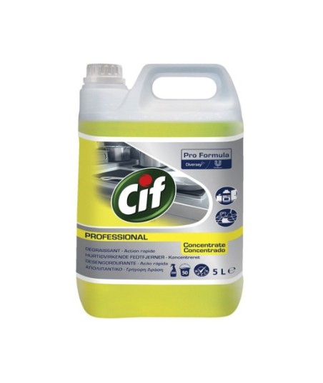 Cif oferece uma gama completa de produtos que lhe permitem limpar cada área da cozinha e do restaurante, desde as tábuas de corte e fornos aos pavimentos com gordura e mesas com sujidades aderidas. ¶Qualquer que seja a necessidade, Cif tem a solução. ¶Agora com produtos de fragrância leve, especialmente desenvolvidos para áreas de preparação de alimentos, bem como poderosos desinfetantes para um ambiente seguro e saudável nas cozinhas. ¶¶Descrição ¶Cif PF Detergente Desengordurante Forte remove rapidamente gorduras e sujidades fortes. ¶É indicado para a maioria das superfícies das cozinhas como panelas, campânulas, filtros, fritadeiras, pavimentos, paredes, portas, caleiras, etc. ¶Deixa uma fragrância fresca e é seguro em alumínio. ¶¶Benefícios ¶Eliminas gorduras difíceis e sujidade ¶Limpa rapidamente ¶Seguro em alumínio ¶Concentrado ¶¶Pro Formula¶Um ambiente perfeitamente limpo está na base de qualquer experiência e relacionamento duradouro com o cliente.¶Pro Formula coloca à sua disposição uma gama completa de produtos de limpeza com fórmulas profissionais e marcas de confiança da Unilever, como Skip, Cif, Sun, Sunlight e Domestos. Esta gama foi desenvolvida especificamente para ir ao encontro das necessidades dos seus negócios, proporcionando-lhe os resultados excecionais de uma limpeza profissional.¶¶Aplicação ¶Indicado para a maioria das superfícies das cozinhas como panelas, campânulas, filtros, fritadeiras, pavimentos, paredes, portas, caleiras, etc. ¶¶Instruções de utilização ¶Aplicar a solução com um pulverizador ou em alternativa usando um balde com pano, mopa ou esponja. ¶Enxaguar e deixar secar ao ar ou usar uma mopa/pano limpo e seco para secar. ¶Para superfícies não alimentares não necessita de enxaguamento. ¶¶Aspeto: Líquido amarelo transparente ¶pH (puro): ± 12,5 ¶Densidade relativa (20 °C): 1,13 ¶Odor: Ligeiramente perfumado ¶¶¶¶