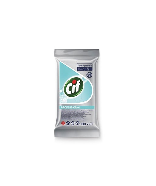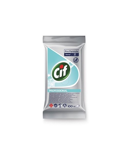 CIF PRO FORMULA MULTIPURPOSE WIPES - Toalhitas multiusos são ideais para uma limpeza rápida mas poderosa para a maioria das superfícies, removendo sujidade visível e invisível. ¶São muito convenientes e são uma solução sempre pronta para o ajudar na limpeza sem lhe retirar tempo para que se dedique ao seu negócio. ¶Indicado para todas as superfícies laváveis tais como cubas, bancadas, fogões, casas de banho, sanitários, caixotes de lixo, mesas e cadeiras. ¶Foram especialmente concebidos com uma estrutura de teia em forma de favo de mel, consegue amolecer, despegar e remover a sujidade de modo rápido e eficaz, deixando uma fragrância fresca.¶¶CARACTERÍSTICAS¶Higiénicas e descartáveis¶Pack de tamanho profissional¶Estrutura de teia em forma de favo de mel eficaz na remoção da sujidade.¶Fragrância fresca¶¶BENEFÍCIOS¶Elimina sujidade visível e invisível eficazmente¶Conveniente e pronto a usar¶Ideal para limpezas intermédias durante o dia de trabalho¶¶PRO FORMULA¶Um ambiente perfeitamente limpo está na base de qualquer experiência e relacionamento duradouro com o cliente. ¶Pro Formula coloca à sua disposição uma gama completa de produtos de limpeza com fórmulas profissionais e marcas de confiança da Unilever, como Skip, Cif, Sun, Sunlight e Domestos. ¶Esta gama foi desenvolvida especificamente para ir ao encontro das necessidades dos seus negócios,  proporcionando-lhe os resultados excecionais de uma limpeza profissional.¶¶APLICAÇÃO¶Indicado para todas as superfícies laváveis tais como cubas, bancadas, fogões, casas de banho, sanitários, caixotes de lixo, mesas e cadeiras. ¶Não necessita de enxáguamento.¶¶INSTRUÇÕES ¶Quebre o selo e levante o autocolante até meio. ¶Limpe as superfícies com a toalhita. Não necessita de enxaguar ou secar.¶Garanta que volta a fechar a embalagem para evitar a secagem indevida das toalhitas