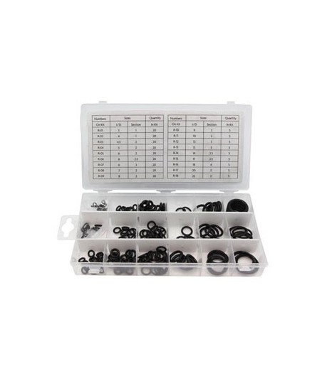 Este conjunto de O-rings é constituído por 18 dos mais utilizados tamanhos de anéis para acomodar uma variedade de tarefas.¶Os anéis de borracha nitrílica resistem ao petróleo, calor, fluidos de silicone e solventes.¶Os anéis vêm organizados em uma caixa em PVC de armazenamento conveniente, com um guia de dimensionamento para identificação fácil do tamanho pretendido.¶Um grande conjunto de O-ring's para uso doméstico, mecânica de automóveis e mecância geral.¶¶18 dos tipos de O-ring mais utilizados. ¶Tamanhos métricos¶¶3 x 1 mm (F0391X): 10 peças¶4 x 1 mm (F0443X): 10 peças¶4,8 x 1,9 mm (P5): 20 unidades¶5,8 x 1,9 mm (P6): 20 pcs¶6,8 x 1,9 mm (P7): 20 unidades¶7,8 x 1,9 mm (P8): 20 pcs¶8,8 x 1,9 mm (P8): 15 pcs¶9,8 x 2,4 mm (P10): 15 peças¶10,8 x 2,4 mm (P11): 15 peças¶11,8 x 2,4 mm (P12): 10 peças¶13,8 x 2,4 mm (P14): 10 peças¶15,8 x 2,4 mm (P16): 10 peças¶5 x 2 mm (F0452X): 10 peças¶8 x 2 mm (F0106X): 10 peças¶20 x 3 mm (G20): 10 peças¶22 x 3 mm (G22): 10 peças¶20 x 4 mm (F0393X): 5 unidades¶22 x 4 mm (F0395X): 5 unidades¶¶Informações da embalagem¶Tipo de embalagem: caixa c/janela
