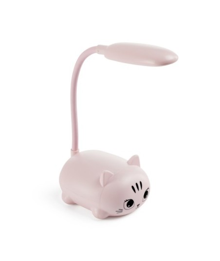 Luz LED para Escrivaninha Back2Fun Gato Rosa.¶Lâmpada flexível em formato de gato, ideal para leitura ou decoração.¶¶Dimensões da luz: 65 x 160 x 75 mm¶Material: Plástico¶Tipo de luz: LED quente e suave¶Alimentação: Cabo USB A - USB C incluído¶Bateria: Duração de até 4 horas sem necessidade de conexão à energia