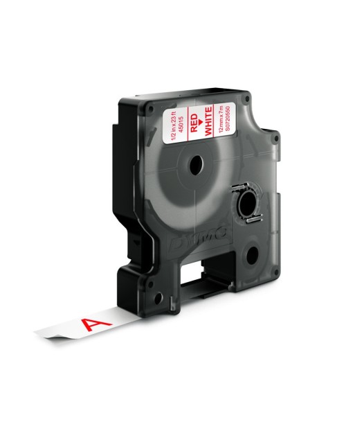 Material da fita: Vinil¶Adesivo: Permanente¶Cor de fundo: Branco¶Cor do texto: Vermelho¶Largura: 12 mm¶Comprimento: 7 m¶¶Compatível com rotuladoras:¶LabelManager: 100, 100PLUS, 120P, 150, 160, 200, 210D, 220P, 260P, 280, 300, 350, 350D, 360D, 400, 420P, 450, 450D, 500TS, PC, PC 2, PnP, Wireless PnP¶LabelPoint: 100, 150, 200, 250, 300, 350¶LabelWriter Duo: 400 Duo, 450 Duo¶MobileLabeler