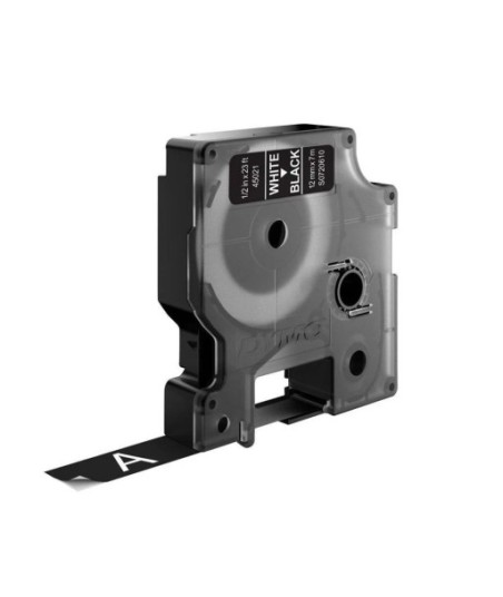 Material da fita: Vinil¶Adesivo: Permanente¶Cor de fundo: Preto¶Cor do texto: Branco¶Largura: 12 mm¶Comprimento: 7 m¶¶Compatível com rotuladoras:¶LabelManager: 100, 100PLUS, 120P, 150, 160, 200, 210D, 220P, 260P, 280, 300, 350, 350D, 360D, 400, 420P, 450, 450D, 500TS, PC, PC 2, PnP, Wireless PnP¶LabelPoint: 100, 150, 200, 250, 300, 350¶LabelWriter Duo: 400 Duo, 450 Duo¶MobileLabeler