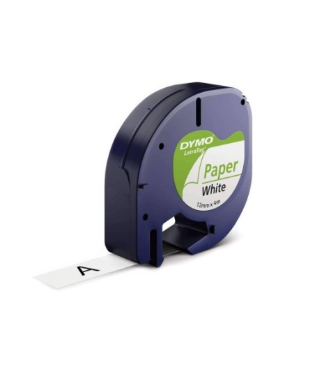 PARA USO DOMÉSTICO ESCRITÓRIO HOBBIES¶Mantenha os seus materiais de escritório, objetos de casa, arquivos ou documentos organizados com estas etiquetas DYMO duráveis.¶O design resistente a rasgões é lavável e fácil de aplicar.¶As fitas LetraTAG apresentam textos impressos com a tecnologia de transferência térmica, eliminando a necessidade de usar tinta e toner.¶São etiquetas laváveis, resistentes à água e a rasgões, sendo indicadas para utilização no interior para organizar a sua casa, os seus documentos ou materiais de escritório. ¶¶Usar apenas em superfícies limpas e lisas, pois não são muito flexíveis. ¶Ideais para marcar gavetas, objetos de cozinha, material de escritório e arquivo, etc.¶Não são adequadas para uso intensivo e não são à prova de UV.¶Não indicado para marcação de cabos.¶¶Largura 12mm¶Comprimento 4m¶Fita: Texto preto em fita branca¶¶Equipamentos compatíveis:¶Dymo LETRATAG Letratag, Letratag 2000, Letratag LT 100H, Letratag LT 100 Series, Letratag LT 100T, Letratag QX 50, Letratag XM, Letratag XR