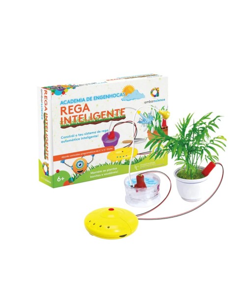 Acreditamos que brincar é a melhor forma de as crianças explorarem e conhecerem o mundo que as rodeia, por isso criamos brinquedos educativos que potenciam o seu desenvolvimento cognitivo, social e emocional, de uma forma divertida e lúdica.¶¶Com os brinquedos AMBARSCIENCE, assumimos o compromisso de proporcionar momentos inesquecíveis de descoberta, felicidade e de aprendizagem aos mais pequenos. Comprometermo-nos com o desenvolvimento das novas gerações é também contribuir para a preservação do meio que as rodeia. Assim, cada vez mais, os nossos brinquedos são produzidos com materiais amigos do ambiente e certificação FSCTM.¶¶Rega Inteligente¶IDADE RECOMENDADA: +6 anos¶Competências desenvolvidas: Consciência Ambiental, Motricidade Fina, Raciocínio Lógico e Conhecimento Científico ¶¶Já podes ir de férias descansado com este sistema de rega automático para construíres. ¶Com os elétrodos metálicos introduzidos na terra, este dispositivo deteta quando a humidade baixa e, de forma automática, ativa uma bomba que rega as tuas plantas.¶¶Inclui:¶Peças para montagem¶Chave de fendas ¶Manual educativo com instruções de montagem e curiosidades.