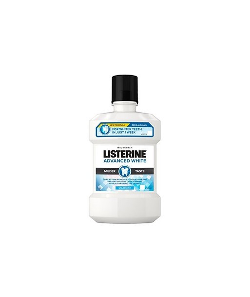 Está clinicamente comprovado que LISTERINE® Advanced White Sabor Suave é um elixir oral com ZERO ÁLCOOL que ajuda a obter dentes mais brancos em apenas 1 semana.¶¶Utilizado duas vezes por dia, LISTERINE® Advanced White Sabor Suave está clinicamente comprovado que branqueia os dentes em 1 semana. Com uma fórmula única:¶1. Poderosos óleos essenciais eliminam até 99% dos germes que causam a placa. Limpa a superfície dos dentes¶2. Atua de forma eficaz com dupla ação: remove as manchas difíceis e previne a formação de novas manchas¶3. Tecnologia de branqueamento não abrasiva que não danifica o esmalte¶4. Com flúor para remineralizar e fortalecer os dentes¶¶Modo de utilização:¶Utilize duas vezes por dia. Para um resultado mais eficaz, utilize de manhã e à noite, após a escovagem. Verta 10 ml (2 colheres de chá de 5 ml) para um copo, bocheche em toda a superfície dos dentes e gengivas durante 60 segundos e deite fora. Não é recomendada a utilização em crianças com menos de 12 anos.¶¶Avisos e precauções:¶Não é recomendada a utilização em crianças com menos de 12 anos. ¶Não ingerir. Em caso de ingestão, procurar assistência médica. ¶Não utilizar se for alérgico a algum dos ingredientes. ¶Parar a utilização e procurar um dentista se ocorrer irritação oral. ¶Manter fora do alcance das crianças. ¶