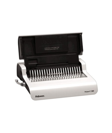 Máquina de encadernação de pente elétrico ideal para uso em pequenos escritórios¶Perfura até 20 folhas de cada vez com o toque de um botão¶Encadernação até 300 folhas¶Diamentro máximo da espiral 38mm¶Bandeja para armazenamento de argolas e guia de medição de documentos¶Perfuração vertical ¶Inclui kit de inicio para 10 documentos¶