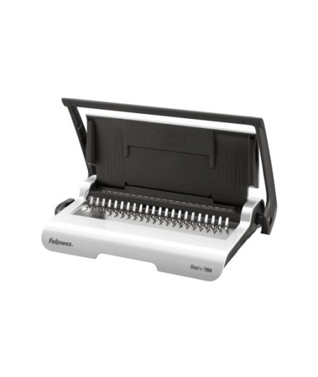Encadernadora de argolas plásticas concebida para uma utilização moderada¶Perfura até 15 folhas A4 de 80 g¶Encaderna até 150 folhas A4 de 80 g com uma espiral de 19 mm¶Bandeja de armazenamento e guia de medição das argolas a utilizar¶Alavanca ergonómica de perfuração, integrada na base¶O carregamento vertical dos documentos assegura um alinhamento perfeito para a sua perfuração¶Alavancas independentes de perfuração e abertura das argolas¶¶Dimensões do produto (Altura x largura x profundidade): 8 x 45 x 28 cm¶Peso do produto 4.3 kg
