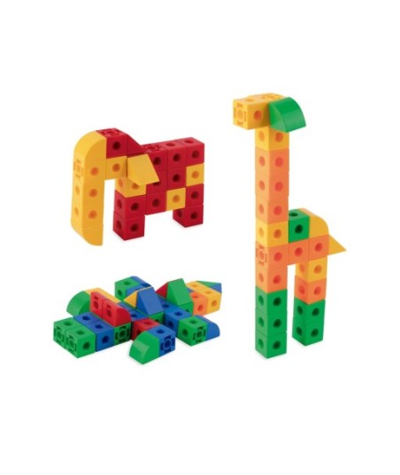 Conjunto educativo com 100 peças para construir encaixando-as e criando formas 3D.¶¶Produto ideal para os mais pequenos trabalharem e desenvolverem a motricidade fina enquanto criam formas com eles, bem como promover e melhorar a coordenação óculo-manual, raciocínio lógico-matemático, visão espacial e habilidades de comunicação, realizando classificações ou atividades em grupo.¶¶O jogo inclui 80 cubos, 10 triângulos, 10 semicirculares e 8 cartas de exemplo para desenvolver sua destreza e imaginação.¶Recomendado para crianças a partir de 4 anos.