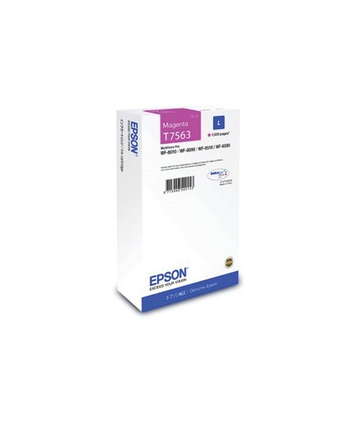 Tinteiro Epson T7563 Magenta C13T756340 ¶14ml¶1.500 Páginas¶¶Impressoras Compatíveis:¶¶Epson WorkForce Pro WF-8000 Series¶Epson WorkForce Pro WF-8010 DW¶Epson WorkForce Pro WF-8090 D3TWC¶Epson WorkForce Pro WF-8090 DTW¶Epson WorkForce Pro WF-8090 DW¶Epson WorkForce Pro WF-8500 Series¶Epson WorkForce Pro WF-8510 DWF¶Epson WorkForce Pro WF-8590 D3TWF¶Epson WorkForce Pro WF-8590 DTWF¶Epson WorkForce Pro WF-8590 DWF¶Epson WorkForce Pro WF-8590 TC¶Epson WorkForce Pro WF-6530 MFP¶Epson WorkForce Pro WF-8090 Series¶Epson WorkForce Pro WF-8090 DTWC¶Epson WorkForce Pro WF-8590 DTWFC¶¶