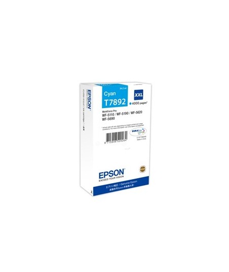 Tinteiro Epson T7892 Azul C13T789240 ¶34,2ml¶4.000 Páginas¶¶Impressoras Compatíveis:¶¶Epson WorkForce Pro WF-5100 Series¶Epson WorkForce Pro WF-5110 DW¶Epson WorkForce Pro WF-5190 DW¶Epson WorkForce Pro WF-5600 Series¶Epson WorkForce Pro WF-5620 DWF¶Epson WorkForce Pro WF-5690 DWF¶¶