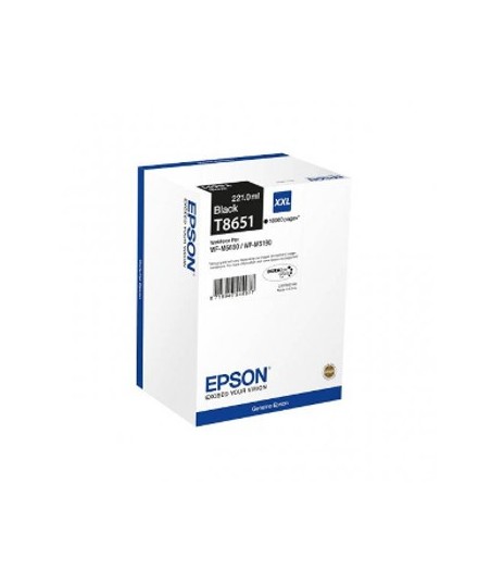 Tinteiro Epson T8651 Preto C13T865140 ¶221ml¶10.000 Páginas¶¶Impressoras Compatíves:¶¶Epson WorkForce Pro WF-M 5000 Series¶Epson WorkForce Pro WF-M 5190 DW¶Epson WorkForce Pro WF-M 5690 DWF¶Epson WorkForce Pro WF-M 5100 Series¶Epson WorkForce Pro WF-M 5600 Series¶Epson WorkForce Pro WF-M 5190 DW BAM¶¶¶