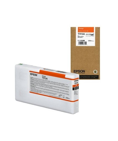 Tinteiro Epson T913A Laranja C13T913A00¶200ml¶¶Impressoras Compatíveis:¶¶Epson SureColor SC-P 5000¶Epson SureColor SC-P 5000 STD Spectro¶Epson SureColor SC-P 5000 Violet¶Epson SureColor SC-P 5000 Violet Spectro¶¶¶
