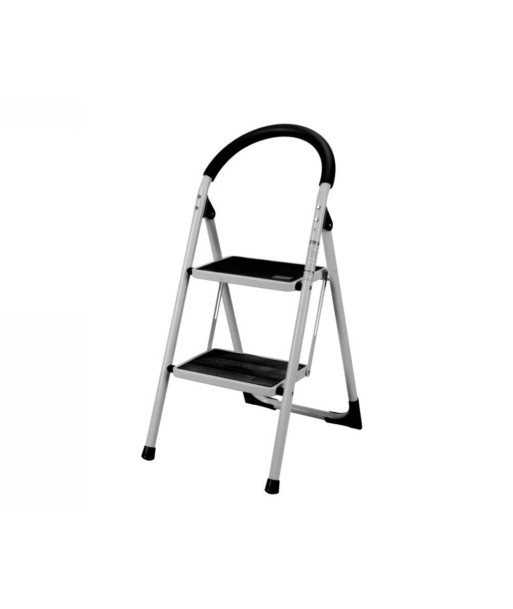 Escadote dobrável robusto e resistente com 2 degraus de 0,9 mm de espessura. ¶¶Superfície do degrau: 30 x 20 cm.¶¶Arco de apoio com altura de segurança.¶Fecho de segurança.¶Dobrável. Não ocupa espaço.¶¶Composição: Aço pintado e metal.¶¶Carga máxima: 150 Kg¶Número máximo de utilizadores: 1 pessoa.¶¶Medidas: 54 (C) x 46 (L) x 80 (A) cm