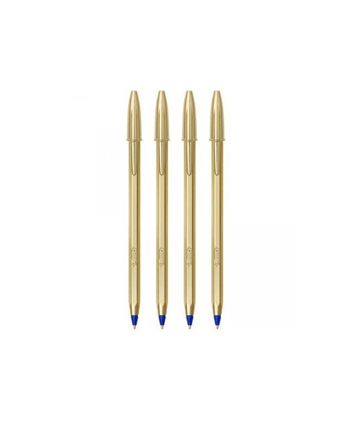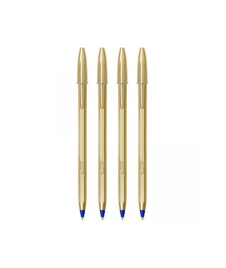 A esferográfica BIC® Cristal® é o instrumento de escrita essencial para a vida quotidiana, simples e eficiente!¶¶Corpo Hexagonal¶Cor: Dourado¶¶Ponta média: 1,0 mm¶Escrita: Azul¶