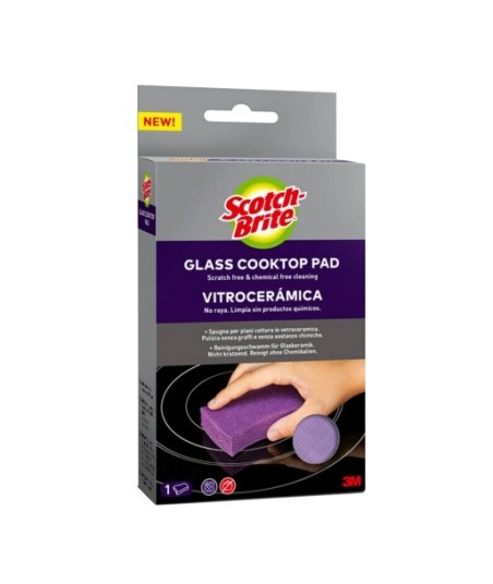 ESFREGÃO PARA PLACAS DE VITROCERÂMICA¶Scotch-Brite Vitrocerâmica é uma inovadora esponja de limpeza que elimina os restos dificeis de comida queimada sem quimicos, apenas com água.¶¶Sem Riscos nem quimicos. ¶Funciona apenas com água. ¶