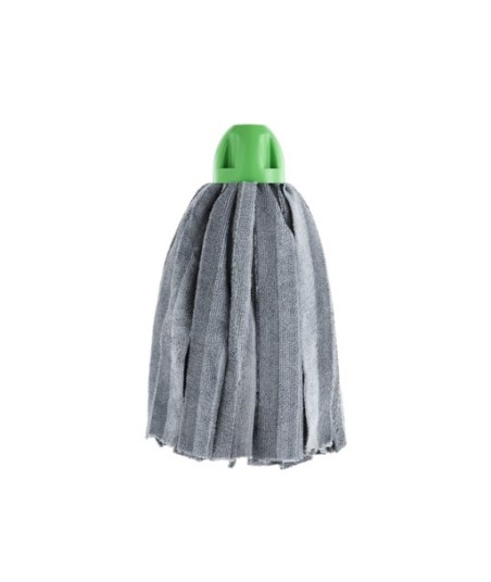 Indicado para todos os tipos de pavimentos.¶Mopa extra absorvente.¶¶Composição das tiras: 90% poliéster, 10% poliamida¶Composição da rosca: 100% Polipropileno¶¶As tiras desta mopa são fabricadas por um processo único e patenteado para obter uma limpeza e secagem imbatíveis.¶Graças a esta tecnologia, pesa menos e desliza mais facilmente.¶¶A tampa não toca nem risca o chão.¶Rosca universal para todos os tipos de cabos¶Tiras 360º¶¶Cor da Rosca: Verde¶Cor das tiras: Cinzento
