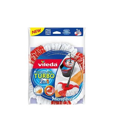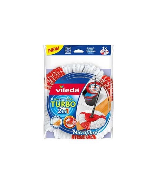 Recarga Microfibras Turbo 2em1 com dois tipos de cordões para uma absorção e capacidade de limpeza superiores¶¶Elevada absorção¶Os cordões brancos 100% microfibras são super absorventes, limpam eficazmente e são delicados com os pavimentos.¶¶Elevada capacidade de limpeza¶Os cordões vermelhos, fabricado com poliamida, recolhem até +20% de partículas (vs. Recarga Classic).¶¶Compatível com o Balde Turbo¶Esta recarga só pode ser usada com o Sistema Turbo uma vez que só é possível ser espremida por centrifugação.¶¶Esta esfregona de microfibras pode ser utilizada em qualquer tipo de pavimentos, inclusive os mais delicados como madeiras ou parquet, pois tem um elevado poder de absorção e capacidade de limpeza.¶¶A recarga é facilmente removível e pode ser lavada na máquina até 30ºC.