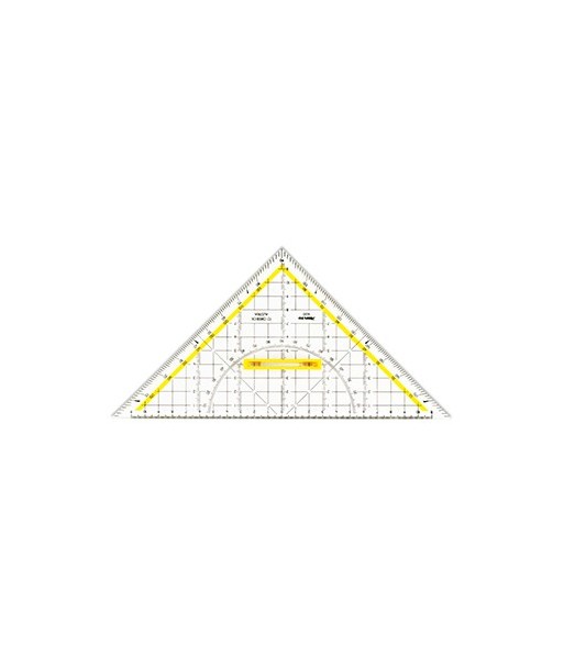 Com uma pegada destacável ¶Grelha de 10 mm, inclinações milimétricas perpendiculares à hipotenusa¶Ângulos marcados em 7° e 42° para desenho em perspectiva, 75° para letras oblíquas e linhas de 45° para facilitar a eclosão¶Feito de plexiglas® altamente transparentes¶Faceta de escala milimétrica¶Faceta nos três lados¶Relevo profundo e o nível de resistência à abrasão, pela dureza do material, letras e escala de ângulo amarelo.¶Está em conformidade com as normas ÖNORM A2134 e A2131¶Embalagens de papelão neutras para o clima e certificadas pelo FSC¶Premiado com o rótulo ecológico austríaco¶