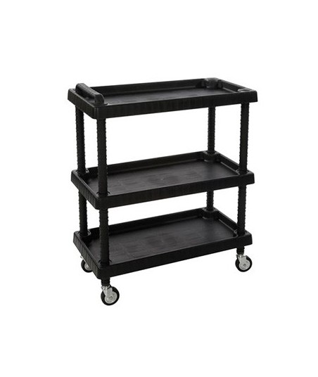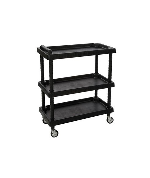 ESTRUTURA RESISTENTE¶Com rodas (uma com travão)¶Com 3 tabuleiros ajustáveis¶Instalação rápida e fácil¶¶MATERIAL¶Carrinho: Polipropileno¶Rodas: Aço¶Cor : Preto¶Carga máx.: 40 kg / tabuleiro¶Dimensões : 750 x 375 x 920 mm¶¶