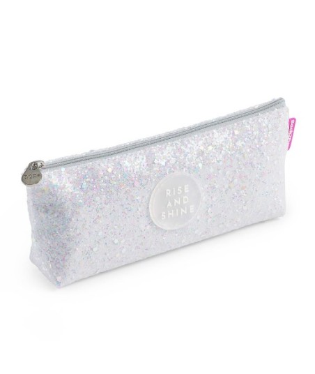 ESTOJO TRIANGULAR BRILHANTE¶Com um divertido design de purpurina. Inclui uma mensagem motivacional: "Rise and Shine".¶Estojo com um único compartimento e um grande espaço interno para armazenar materiais escolares ou objetos de diferentes tamanhos.¶Versátil para diversos usos, como guardar material de papelaria, artigos de maquiagem, pequenos objetos - tudo o que precisar!¶¶FABRICADO EM POLIÉSTER COM PURPURINA¶Um material de qualidade, durável e resistente ao desgaste, garantindo uma longa vida útil ao estojo escolar.¶¶ESTOJO MULTIUSOS¶Leve e fácil de transportar em mochilas, bolsas ou carteiras, perfeito para levar para a escola ou para viagens.¶Apresentado numa embalagem transparente (210 x 85 x 45 mm), sendo uma excelente opção de presente ou detalhe para amigo secreto.¶Pertence à divertida e colorida coleção Back2Fun.¶Agora está tudo pronto para brilhar!¶¶Estojo Triangular ¶Com 1 Compartimento¶Tamanho 200 x 80 x 35 mm¶Com Purpurina e Puxador Metálico¶Fecho de Zíper¶Material Poliéster¶