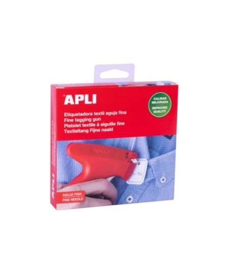 Etiquetadora de tecidos finos. Ideal para etiquetar com rapidez e precisão todos os tipos de tecidos sem usar adesivo ou danificá-los. Especialmente desenvolvido para tecidos finos e delicados. ¶Inclui tampa de proteção da agulha e alça de pulso.¶¶O pacote inclui:¶1 pistola têxtil padrão¶Dimensões (L) 102 x (P) 27 x (A) 122 mm¶1 agulha padrão¶(Não inclui os navetes para aplicação das etiquetas, compra opcional)¶¶Referências consumíveis:¶Ref. APL101571 - Agulhas Etiquetadora Têxtil Apli 5un ¶Ref. APL101572 - Navetes Finos Etiquetadora Têxtil 25mm Apli 5000un ¶Ref. APL101573 - Navetes Finos Etiquetadora Têxtil 50mm Apli 5000un