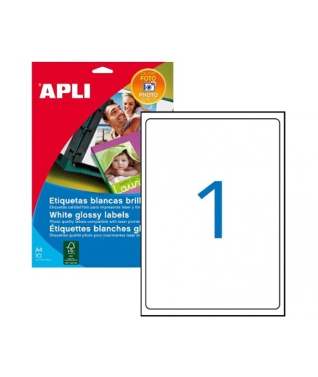 Etiquetas 199,6x289,1mm 10Fls Branco Glossy Apli 10un