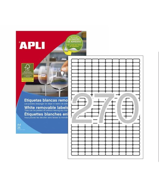 Etiquetas brancas com cantos arrendondados, tamanho 17,8 x 10,0 mm com adesivo removível para usos múltiplos. ¶Embalagem com 25 folhas (6.750 etiquetas). ¶¶O adesivo removível permite que a etiqueta seja removida sem deixar vestígios. ¶Perfeito para identificar objetos, precificar produtos, colar em vidro ou cerâmica, etc. ¶Excelente qualidade de impressão em impressoras jato de tinta, laser ou fotocopiadora. ¶¶Certificados: FSC