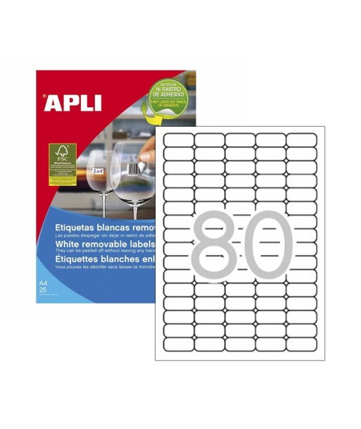 Etiquetas brancas com cantos arrendondados, tamanho 35,6 x 16,9 mm com adesivo removível para usos múltiplos. ¶Embalagem com 25 folhas (2.000 etiquetas). ¶¶O adesivo removível permite que a etiqueta seja removida sem deixar vestígios. ¶Perfeito para identificar objetos, precificar produtos, colar em vidro ou cerâmica, etc. ¶Excelente qualidade de impressão em impressoras jato de tinta, laser ou fotocopiadora. ¶¶Certificados: FSC