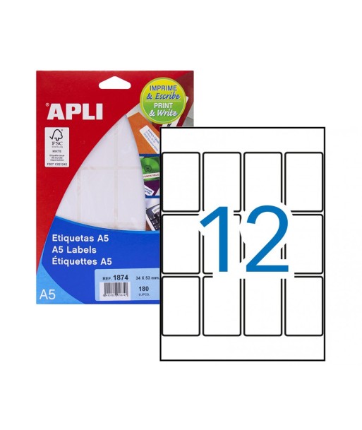 Etiquetas 034x053mm 15Fls A5 Apli 180un