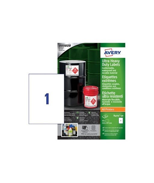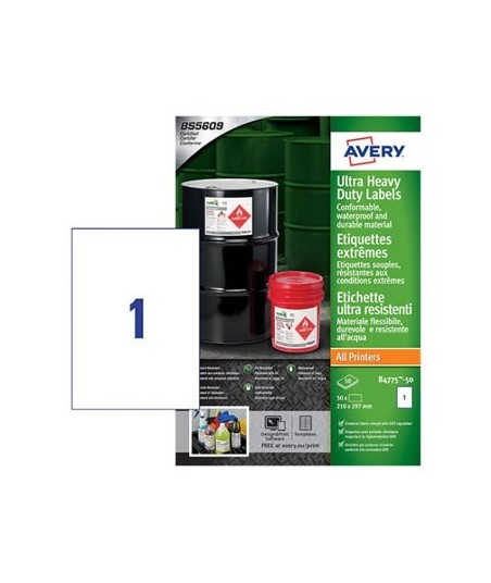 Etiquetas Ultra-Resistentes 210x297mm 50Fls A4 Avery 50un
