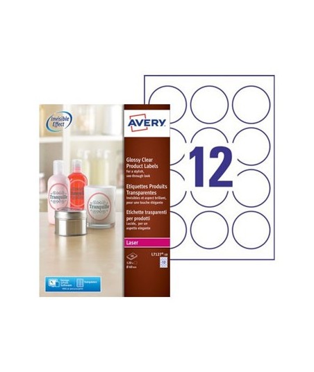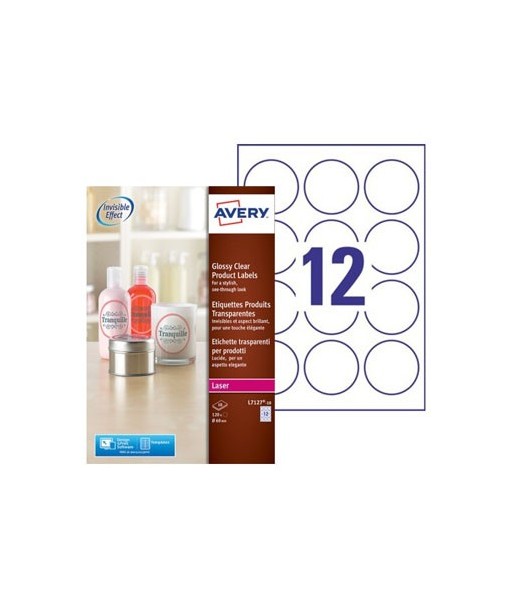 Faça com que seus produtos sejam notados com as etiquetas Avery Glossy Clear! Perfeito para rotular recipientes coloridos porque, uma vez aplicados, são invisíveis. ¶Garantem uma impressão com cores brilhantes e textos nítidos. ¶Comunique os valores, imagens e mensagens de sua marca profissionalmente com esses rótulos, estes podem ser usados em produtos, embalagens e materiais de marketing. ¶Disponível em várias formas e materiais, para atender a todas as suas necessidades de rotulagem. ¶¶Dimensões: Ø 60mm¶Conteúdo: 120 etiquetas/10 folhas¶Impressão: Laser¶Código de software: L7127¶Tipo de adesivo: Permanente¶Cor: Transparente¶Material: Papel brilhante¶Forma: Redondo¶Formato: A4¶