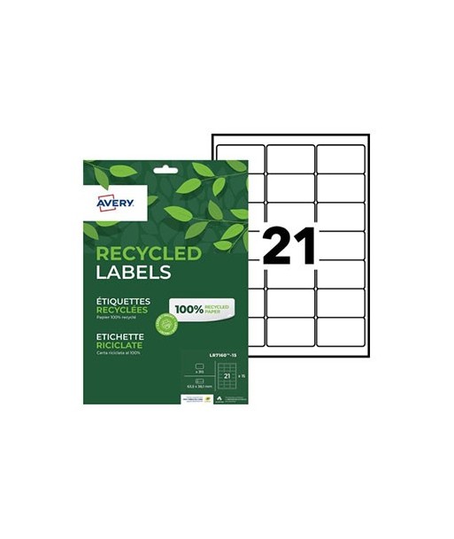 Etiquetas Recicladas 63,5x38,1mm Avery 15 Folhas 315un