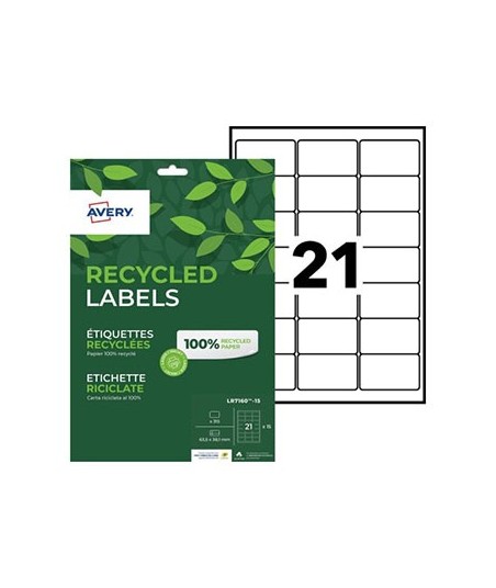 Estas etiquetas ecológicas são feitas com papel 100% reciclado e foram lavadas sem branqueadores óticos. Além disso, o adesivo é à base de emulsão aquosa. ¶¶Otimizadas para impressão a laser, estas etiquetas também são compatíveis com impressoras a jato de tinta.¶¶Finalmente, para ir ainda mais longe na abordagem ambiental, parte da receita gerada pela venda de rótulos 100% reciclados é usada para financiar projetos de reflorestamento na França liderados pela empresa Ecotree.¶¶Dimensões: 63,5 x 38,1 mm¶Conteúdo: 315 etiquetas / 15 folhas¶Impressão: Laser e Jato de tinta¶Código de software: LR7160¶Tipo de adesivo: Permanente¶Cor: Branco, Branco fosco¶Matéria: Papel reciclado¶Forma: Retangular¶¶