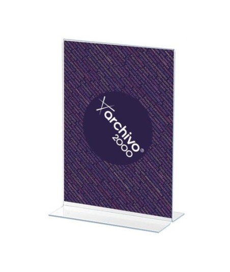 Expositor de mesa em forma de T Arquivo 2000 A3 vertical.¶¶Fabricado em poliestireno ultra-transparente de alta qualidade e resistência.¶Visibilidade dos dois lados.¶O documento pode ser inserido a partir de baixo ou de ambos os lados.¶Base larga que o torna muito estável.¶¶Medidas exteriores: 100x300x430 mm.