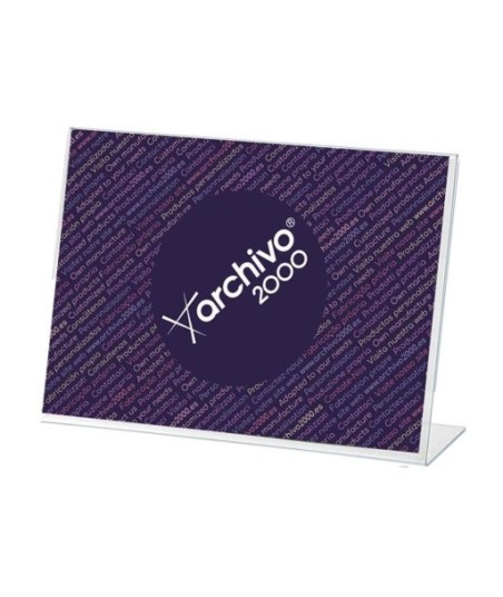 Display de mesa em forma de L File 2000 A3 horizontal.¶¶Fabricado em poliestireno ultratransparente de alta qualidade e resistência.¶Visibilidade de um lado.¶O documento desliza lateralmente.¶Base ampla que o torna muito estável.¶¶Medidas exteriores: 85x420x305mm.