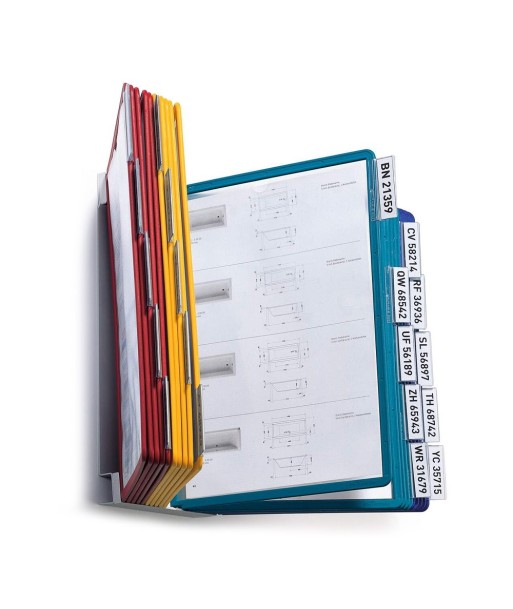 Conjunto completo de painéis de exposição para aplicações em parede¶Suporte de parede com 20 painéis SHERPA em formato A4, 5 unidades cada em vermelho, amarelo, verde e azul escuro¶¶Painéis em polipropileno com moldura de perfil colorido e película de baixo reflexo adequada para scanners¶Inclui separadores com folhas de inserção em branco para etiquetar os painéis ¶¶Montagem simples na parede¶Mecanismo pivotante prático para uma substituição simples dos expositores¶5 anos de garantia¶¶Largura exterior (mm): 460 ¶Altura exterior (mm): 325¶Profundidade/comprimento exterior (mm): 260¶Para formato: A4¶¶Ângulo de leitura ajustável: Não ¶Extensível: Não ¶Abas com etiquetas em branco incluídas: Sim¶Antibacteriano: Não