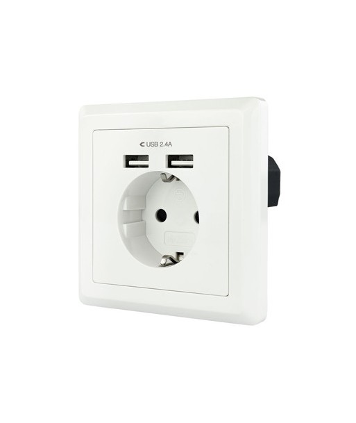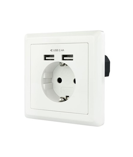 Produto adequado para instalação em caixa universal por meio de parafusos¶Tomada CEE 7/3¶2 portas de carregamento USB tipo A com carga máxima de 2,4A total¶Ligação eléctrica com ligação à terra¶Entrada máxima: 16A/250V¶Saída USB: Máx. 5V/2.4A total¶Secção máxima de cabos admitida: 2,5 mm¶Protecção contra curto-circuitos¶Certificados CE, ROSH, LVD e KEMA¶Cor: Branco¶Dimensão do produto: 86x86x45 mm¶¶Conteúdo do pacote:¶1 x Tomada¶2 x Parafusos¶1 x Manual do usuário