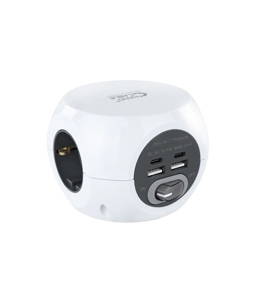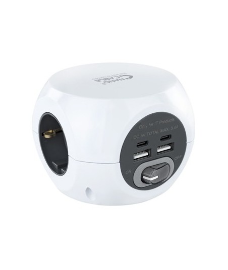 PRÁTICO SIMPLES E ÚTIL. Ligue todos os aparelhos USB num só dispositivo.¶¶3 tomadas de ligação à terra¶4 portas USB, 2 tipo A e 2 tipo USB-C (máx. 3.4A)¶Voltagem: 230V-50Hz /16A¶Entrada máxima: 16A/250V¶Troca: ON/OFF¶¶Cabo eléctrico: 1,4 metros¶Secção transversal do cabo: 3x1,5 mm2¶Cor: Branco¶Dimensões do produto: 93x93x73 mm¶¶Conteúdo do pacote:¶1 x Tomada de 3 soquetes com 4 tomadas USB com interruptor¶1 x Almofada antiderrapante¶¶Informação da embalagem:¶Caixa¶Peso aprox. (kg): 0,499¶Medidas aprox. (mm) altura/largura/comprimento: 135/130/100¶Certificação CE, ROSH, GS e RED