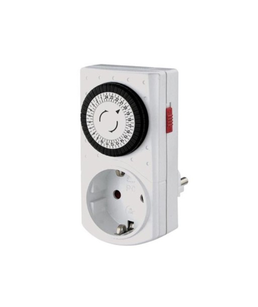 Descubra a máxima comodidade com um interruptor horário! ¶Com um interruptor horário, pode controlar sem esforço e automaticamente as suas luzes, aparelhos e muito mais, ligando e desligando aparelhos electrónicos de consumo, equipamento de escritório ou luzes com um atraso específico. ¶Poupe energia e dinheiro através da temporização precisa dos seus aparelhos eletrónicos.¶¶Programação precisa: Este interrutor horário oferece até 48 definições de hora precisas por dia através de um interrutor deslizante lateral (30 min.) para que possa ativar ou desativar os seus dispositivos à hora desejada.¶¶Poupança de energia: O temporizador permite-lhe reduzir o desperdício de energia, desligando automaticamente os aparelhos quando não são necessários, o que resulta em custos de energia mais baixos.¶¶Fácil de instalar: Este temporizador é fácil de instalar e não requer configurações complicadas: ligue o temporizador à tomada e ligue o aparelho ao temporizador. Não é necessário efetuar quaisquer alterações à instalação doméstica.¶¶Aplicações flexíveis: O temporizador é versátil e adequado para várias aplicações, como ligar e desligar aparelhos electrónicos de consumo, equipamento de escritório, iluminação, etc., com um atraso especificado. ¶Com o LED de alimentação e o interrutor de função temporizador/sempre ligado, a utilização deste temporizador também é fácil.¶¶Sustentabilidade e consciência ambiental: Com este temporizador, pode reduzir a sua pegada de carbono. Ao ser mais consciente em termos energéticos, contribui para um futuro mais sustentável e ajuda a proteger o ambiente. Além disso, poupará na sua fatura de energia!¶¶Cores primárias: Branco¶Cores adicionais: Preto, Vermelho¶Profundidade: 7,6 cm¶Altura: 12,15 cm¶Largura: 7,55 cm¶Peso: 166 g¶¶Capacidade de carga atual: 16 A¶Potência máxima nominal: 3680 W¶¶Definição do temporizador: 0-24 h¶Programas por dia: 48¶Intervalo do temporizador: 24 h¶Tipo de temporizador: Mecânico¶¶Classificação IP: IP20¶Local de utilização: Apenas interior¶¶Tipo de ficha principal: Tipo E/F (França/Alemanha)¶Tipo de tomada de rede: Tipo F (Alemanha - Schuko)¶Este artigo não é adequado para o mercado belga.¶¶Frequência nominal de entrada: 50 Hz¶Tensão nominal de entrada: 230 V¶¶