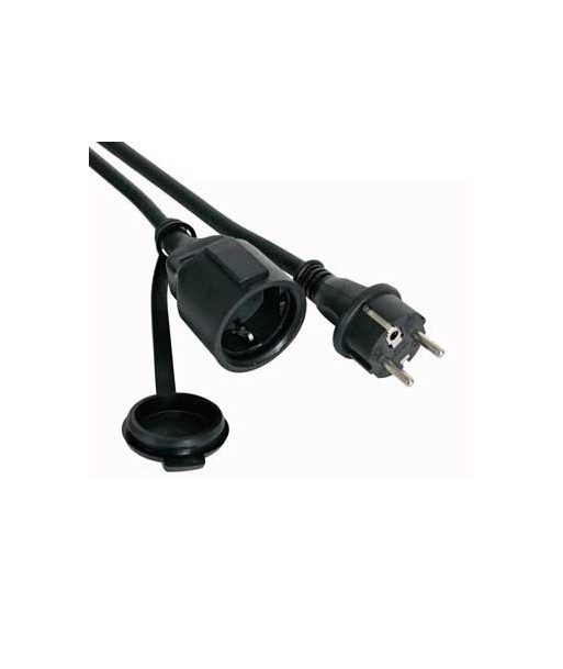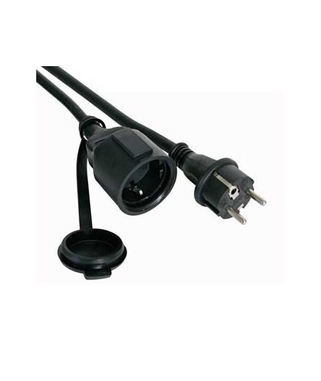 Tipo de casquilho: Alemã (tipo F)¶¶Propriedades Físicas¶Comprimento do Cabo 10 m¶Número de Fichas 1¶ ¶Dados Relativos à Eletricidade¶Corrente 16 A¶Classificação de Potência Máxima 3680 W¶ ¶Dados Técnicos¶Tipo de Cabo H05RR-F 3G1.5¶ ¶Dados Ambientais¶Classificação IP IP44¶Local de Utilização Interior & Exterior¶ ¶Ligações Elétricas¶Número de Polos 3¶Número de Tomadas Tipo-F 1¶Tipo de Ficha Principal Alemanha (Schuko)¶Tipo de Tomada Alemanha (Schuko)¶ ¶Fonte de Alimentação¶Classificação de tensão VAC 230 V AC¶ ¶Inclui¶Tampa/Cobertura Sim¶ ¶Informação Básica Sobre o Produto¶Cor Preto¶Peso 1465 g¶Material Borracha