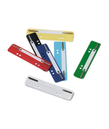 Tiras de arquivo para fixar documentos perfurados ¶Ideal para o arquivamento ordenado de documentos em pastas e fichários ¶¶Perfuração: 60/80 mm¶¶Dimensões externas (L x A): 38 x 150 mm¶Cor: Sortido